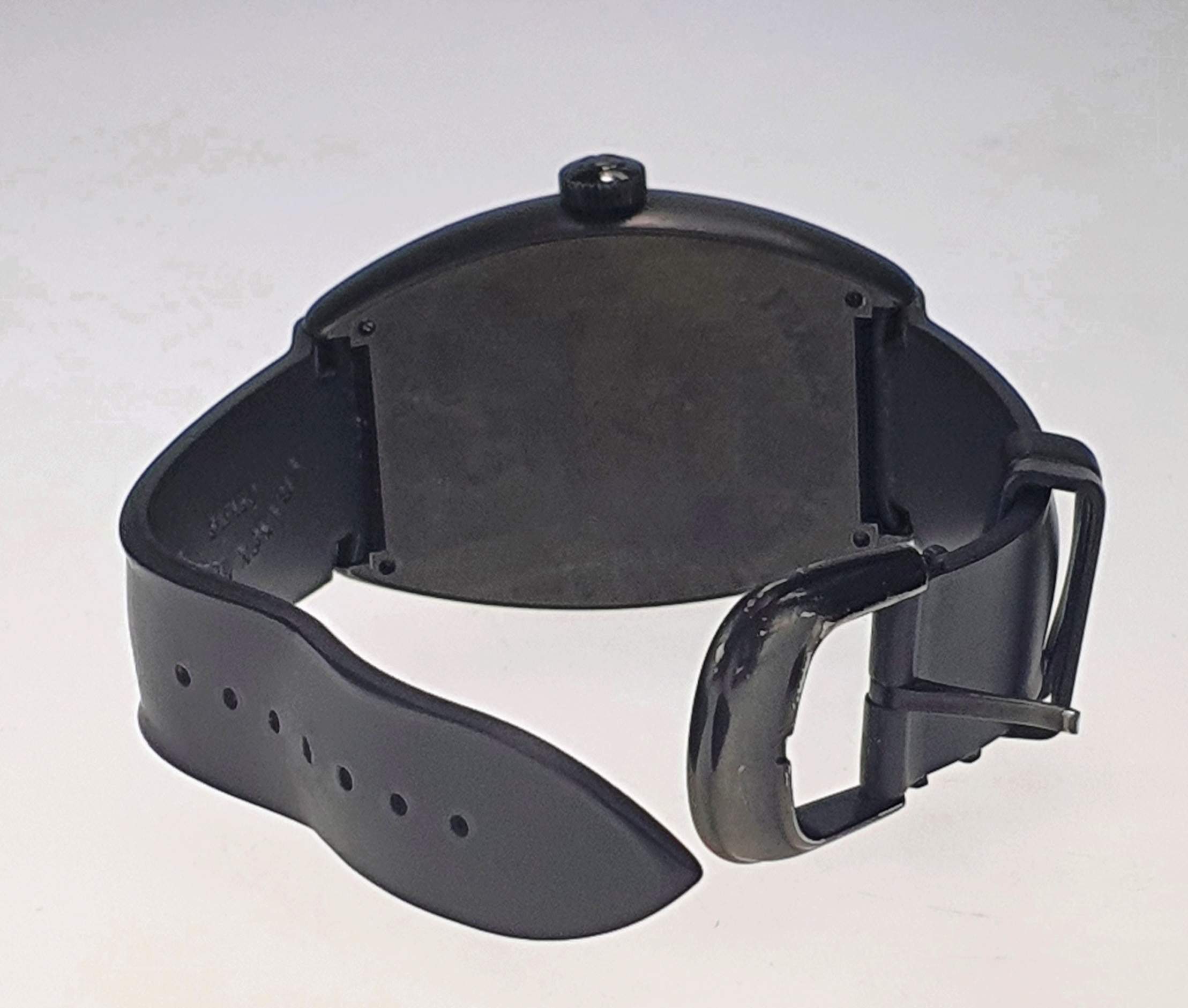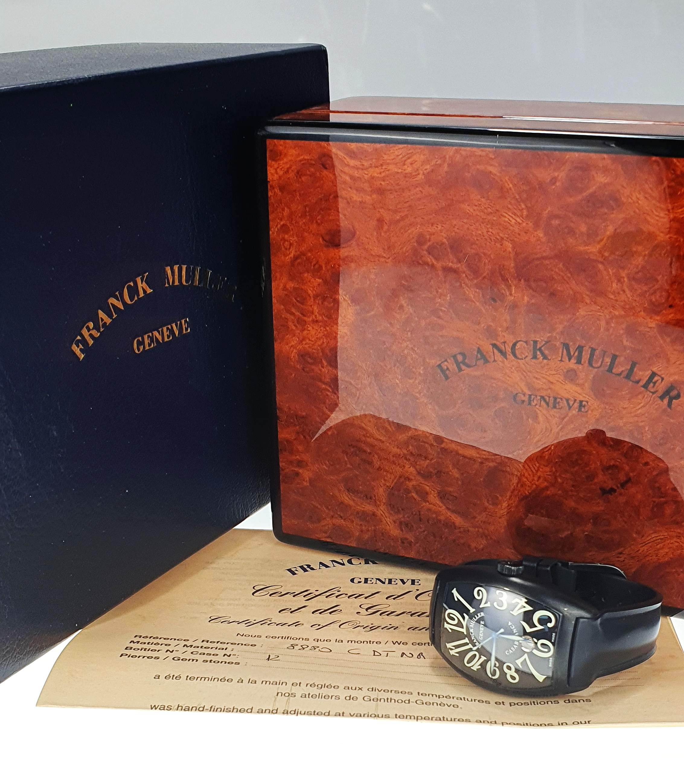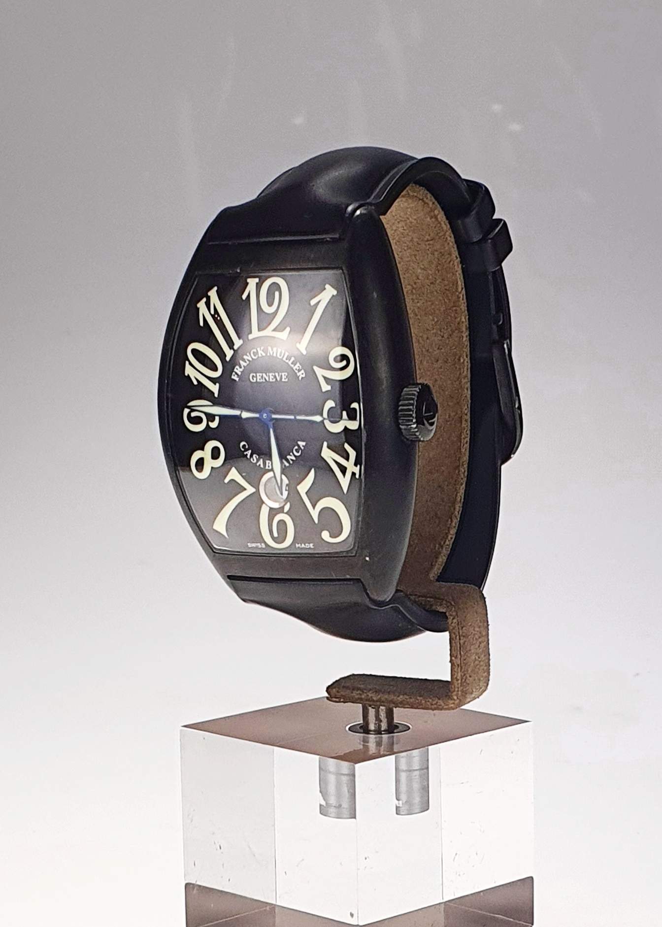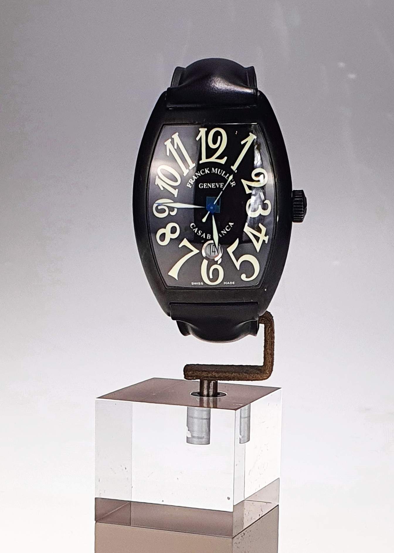 Il Franck Muller Casablanca è un orologio del 2009, in ottimo stato, con cassa in acciaio da 39×55 mm e vetro zaffiro. Presenta un quadrante nero con numeri arabi, impermeabile fino a 30 metri e cinturino in caucciù nero con chiusura ad ardiglione in acciaio. Il movimento è automatico, ed è corredato dalla sua scatola e garanzia originale. Questo esemplare numerato (n. 12) è dotato di datario posizionato a ore 6, perfetto per chi cerca un segnatempo di lusso e precisione.