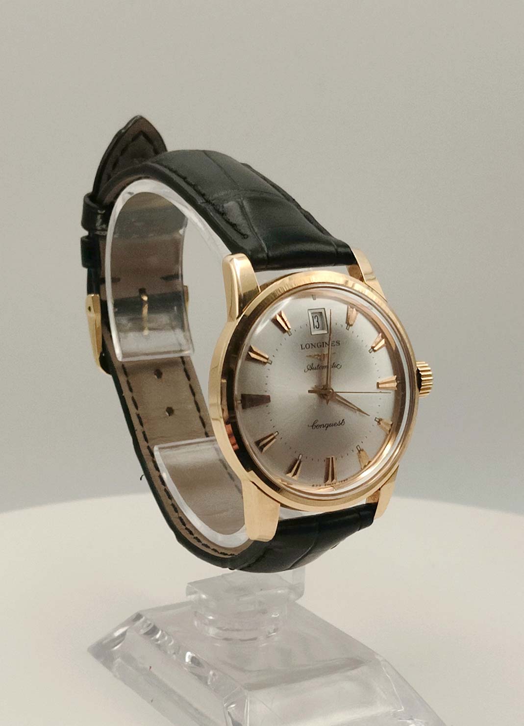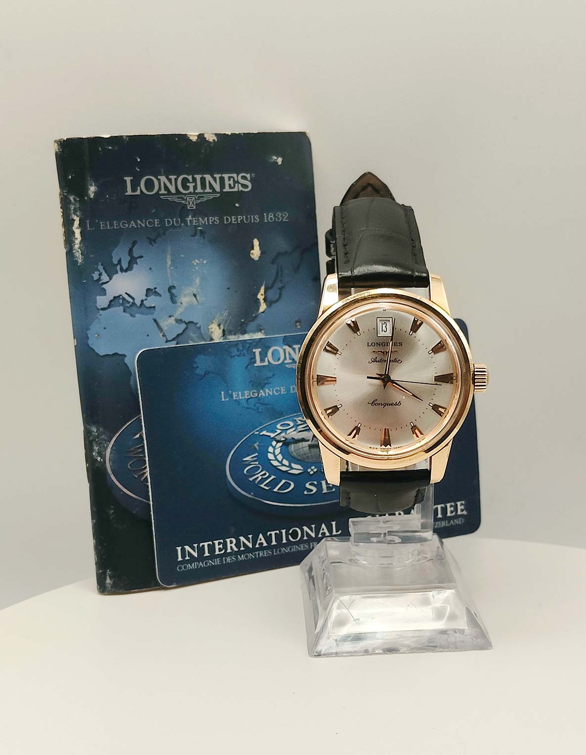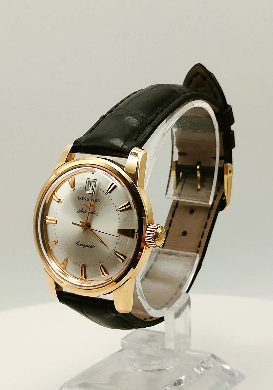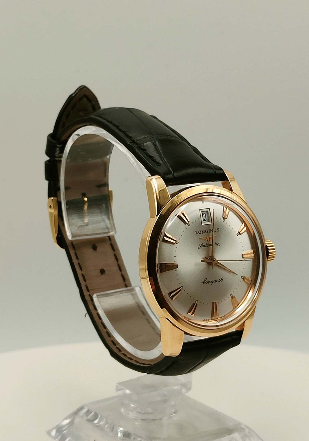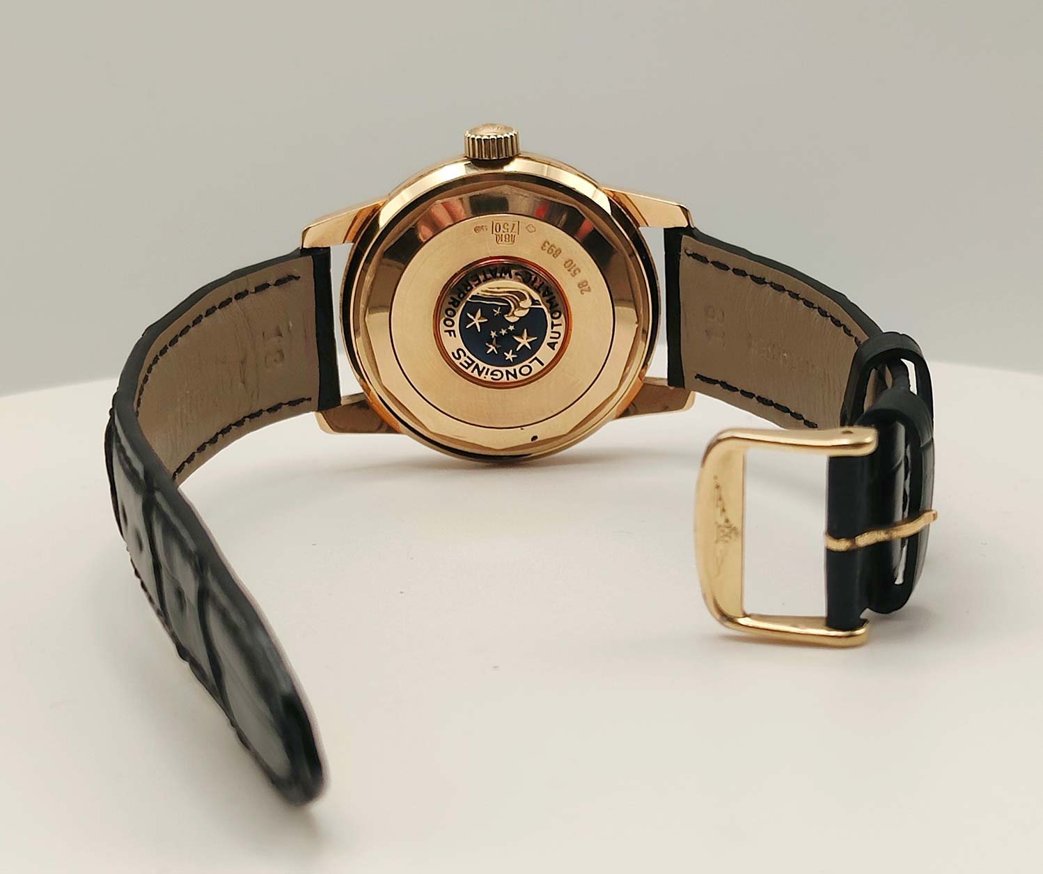 Completano l’orologio il cinturino in pelle nera con ardiglione originale placcato, perfettamente coerente con l’anima classica del modello.