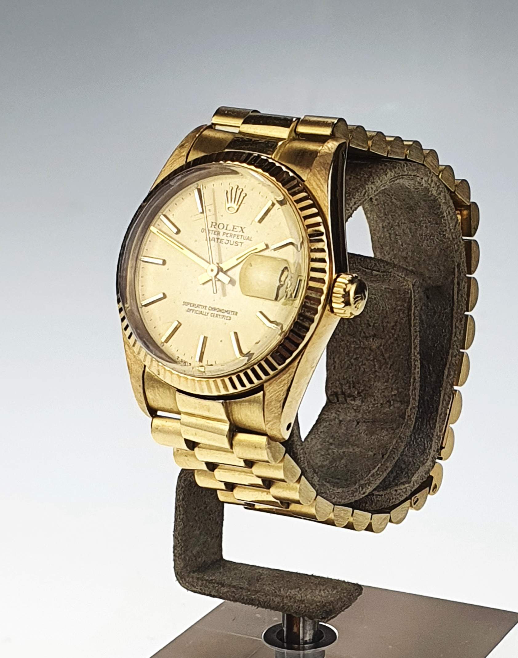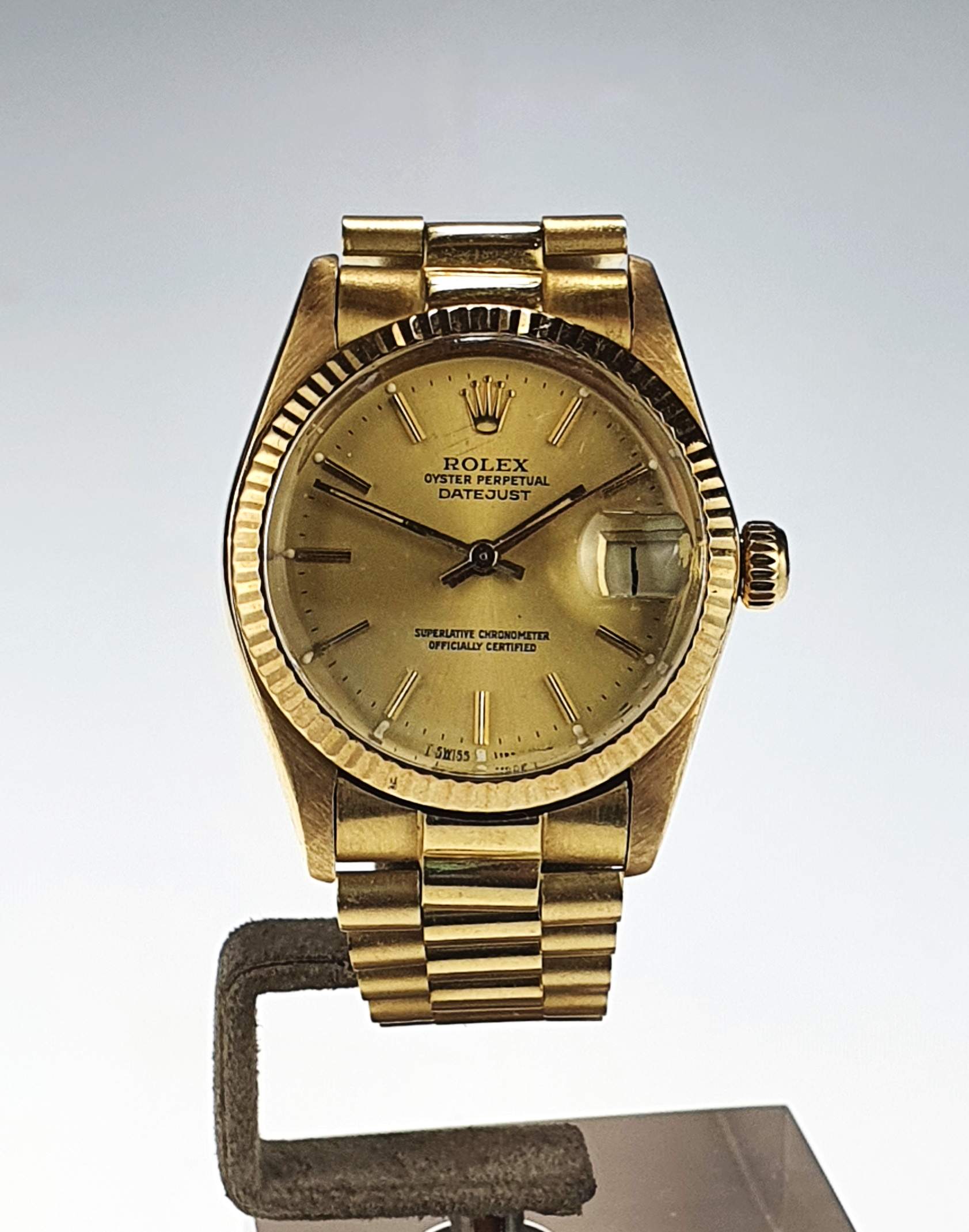 Il Rolex Date Just, prodotto negli anni ’70, è un classico orologio in ottimo stato con una cassa in oro giallo da 31 mm. Dotato di un datario a ore 3, vetro Esalite e una lunetta zigrinata in oro giallo, questo modello combina eleganza e funzionalità. Il movimento automatico calibro 2135 garantisce precisione e una riserva di carica di 42 ore.