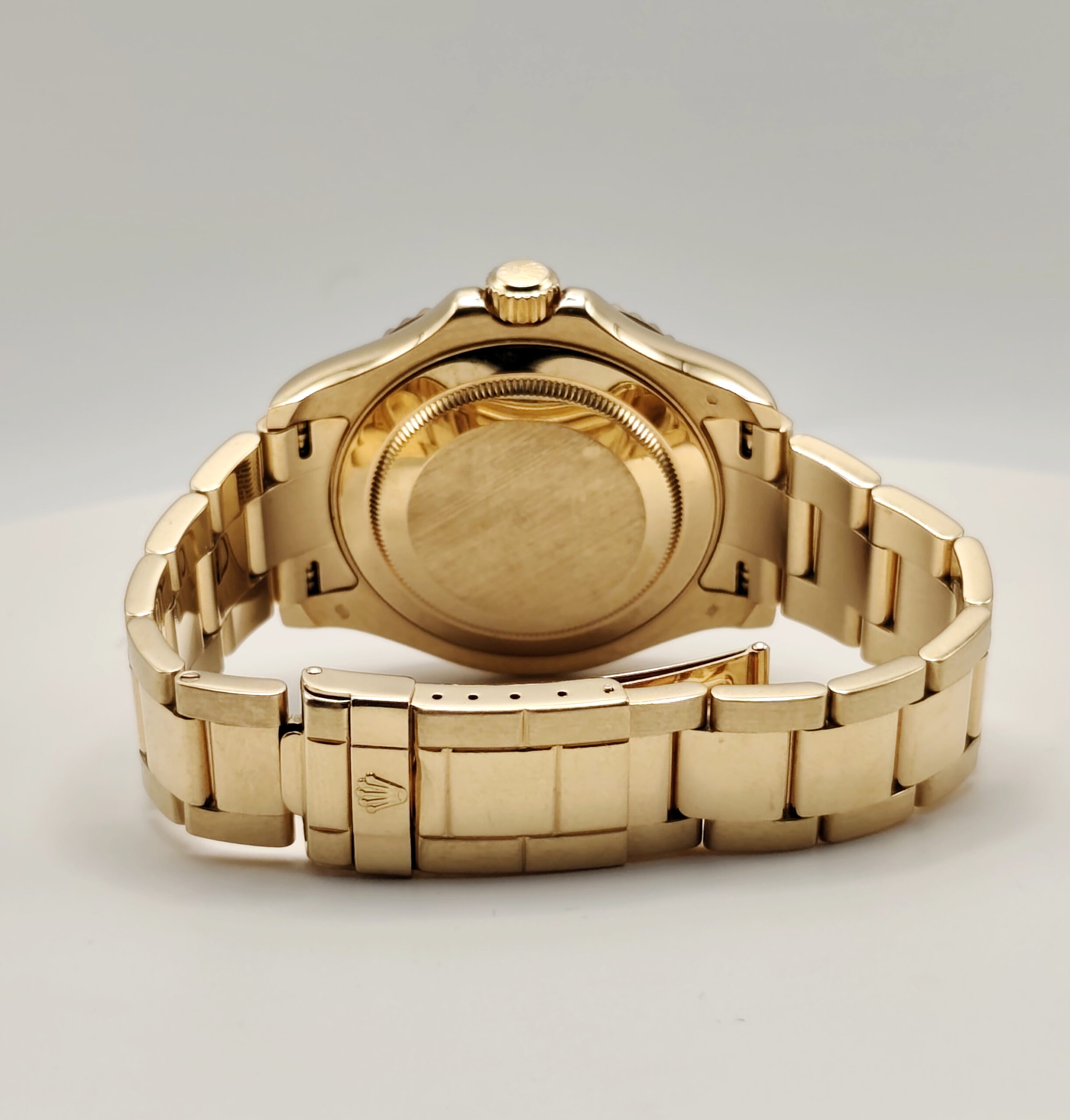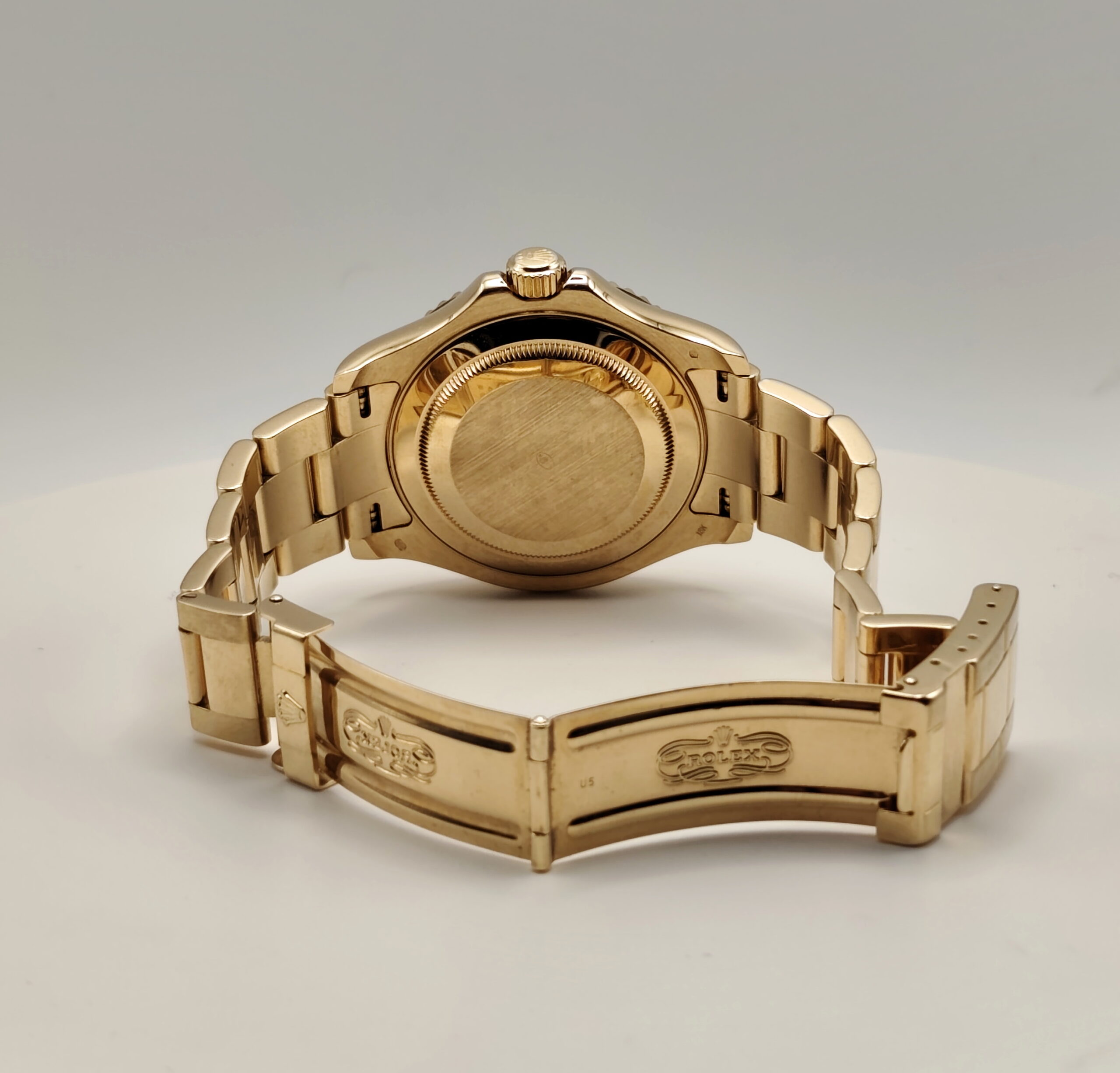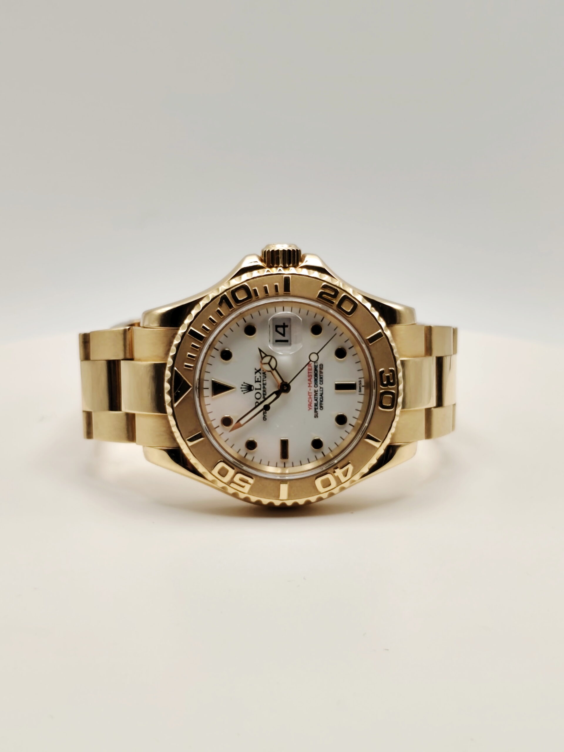Rolex Yacht-Master, 1998, è un automatico con datario ad ore 3. Cassa in oro giallo, vetro zaffiro, quadrante bianco con indici bicchierino. Bracciale in oro giallo, chiusura deployante. In ottimo stato di conservazione.