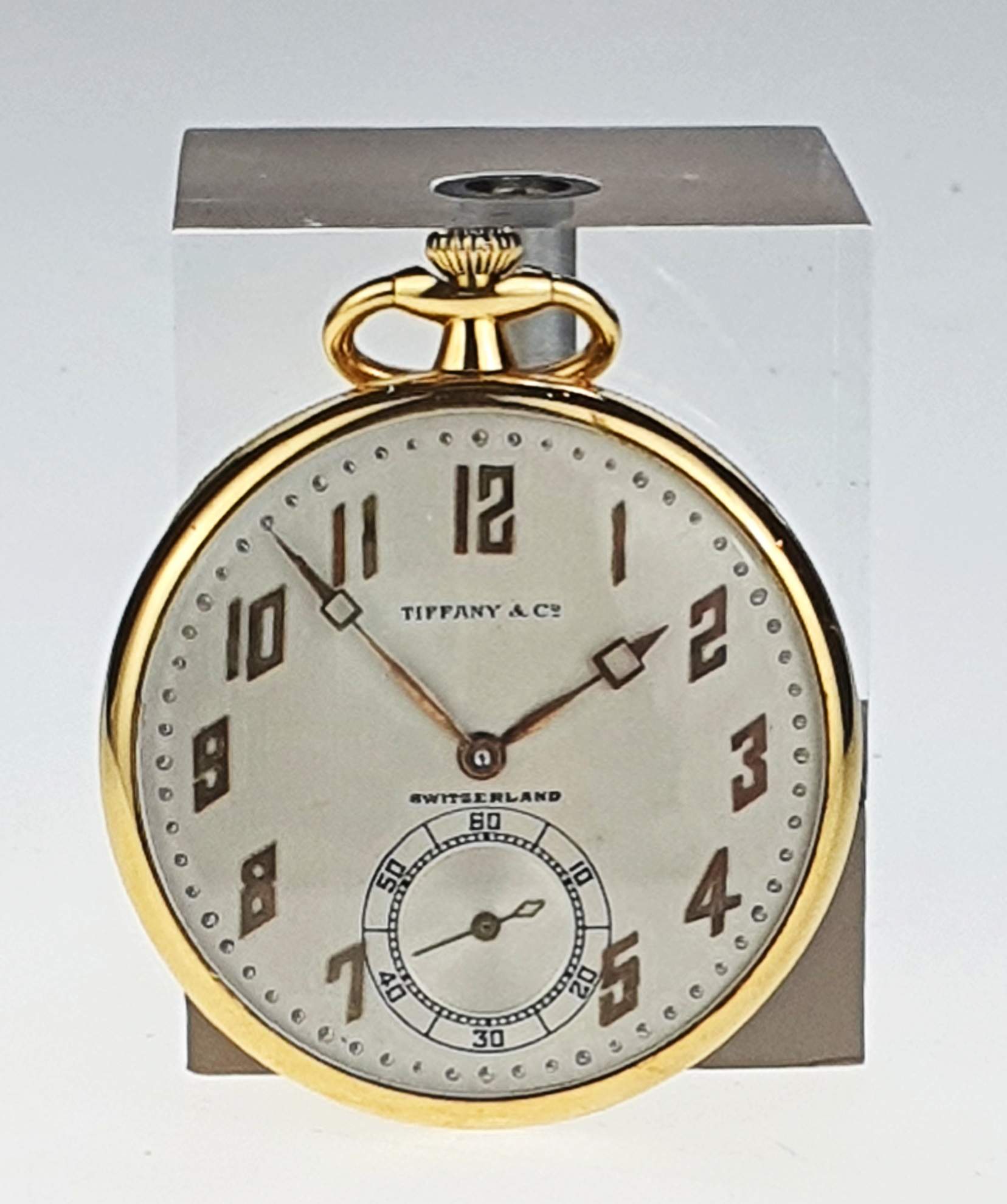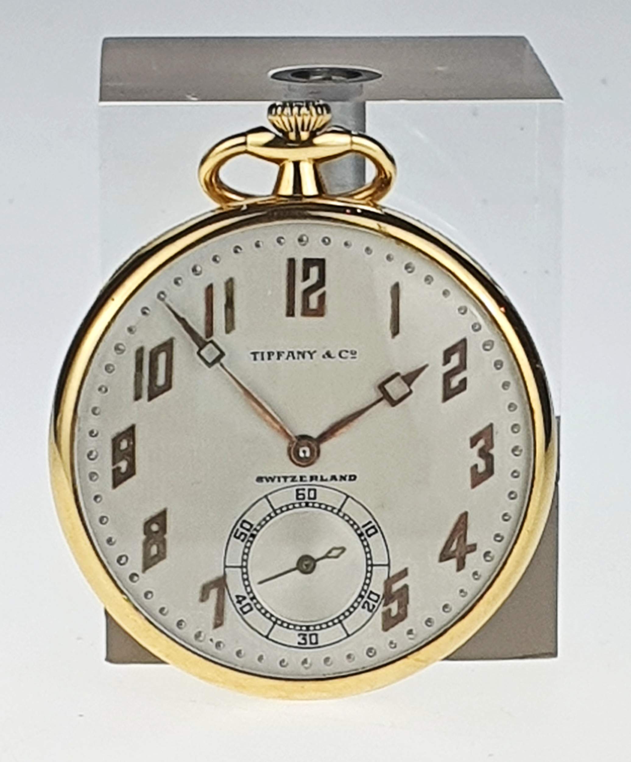 Il Tiffany by Agassiz Watch & Co. è un raffinato orologio vintage con cassa in oro giallo da 44 mm e numeri arabi su quadrante perlato. Dotato di un movimento a carica manuale con 21 rubini, e regolazione a collo di cigno, rappresenta un connubio di eleganza e precisione. Completato da un cinturino in acciaio con chiusura ad ardiglione, è un pezzo di alta orologeria, ideale per gli appassionati di orologi classici e collezionisti di lusso.