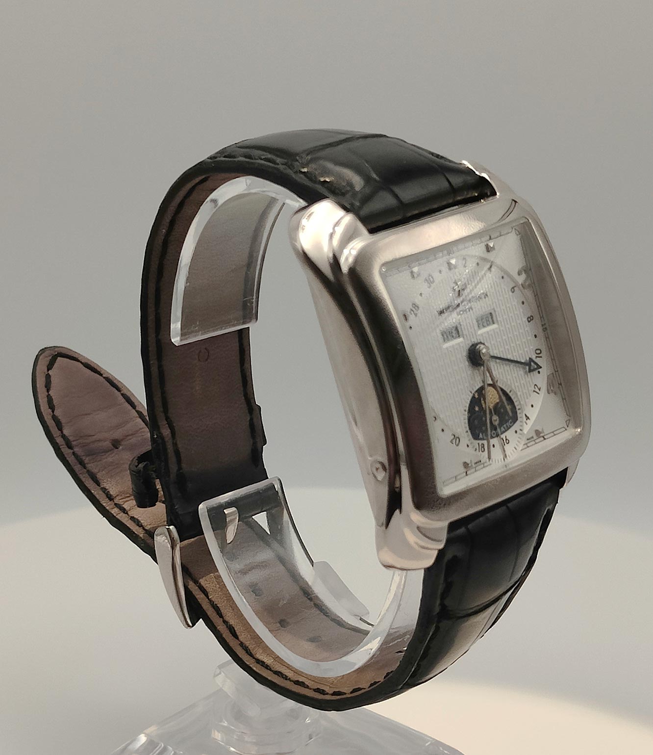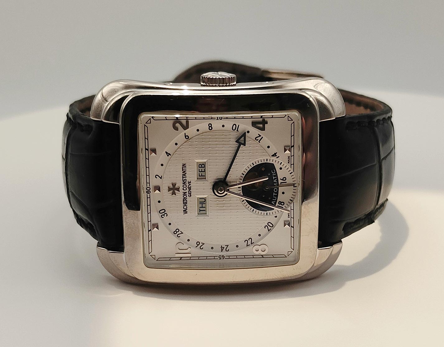 Il Toledo 1952 è uno degli esemplari più ricercati della linea Historiques. La cassa a triplo corpo in oro bianco e la complessità del movimento lo rendono un pezzo d’investimento e di raro piacere estetico, perfetto per il collezionista che cerca un’alternativa distintiva ai classici segnatempo tondi.
